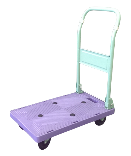 ハンドル:スチール、板:PE、タイヤフレーム:スチール、タイヤ:PE荷台600*400