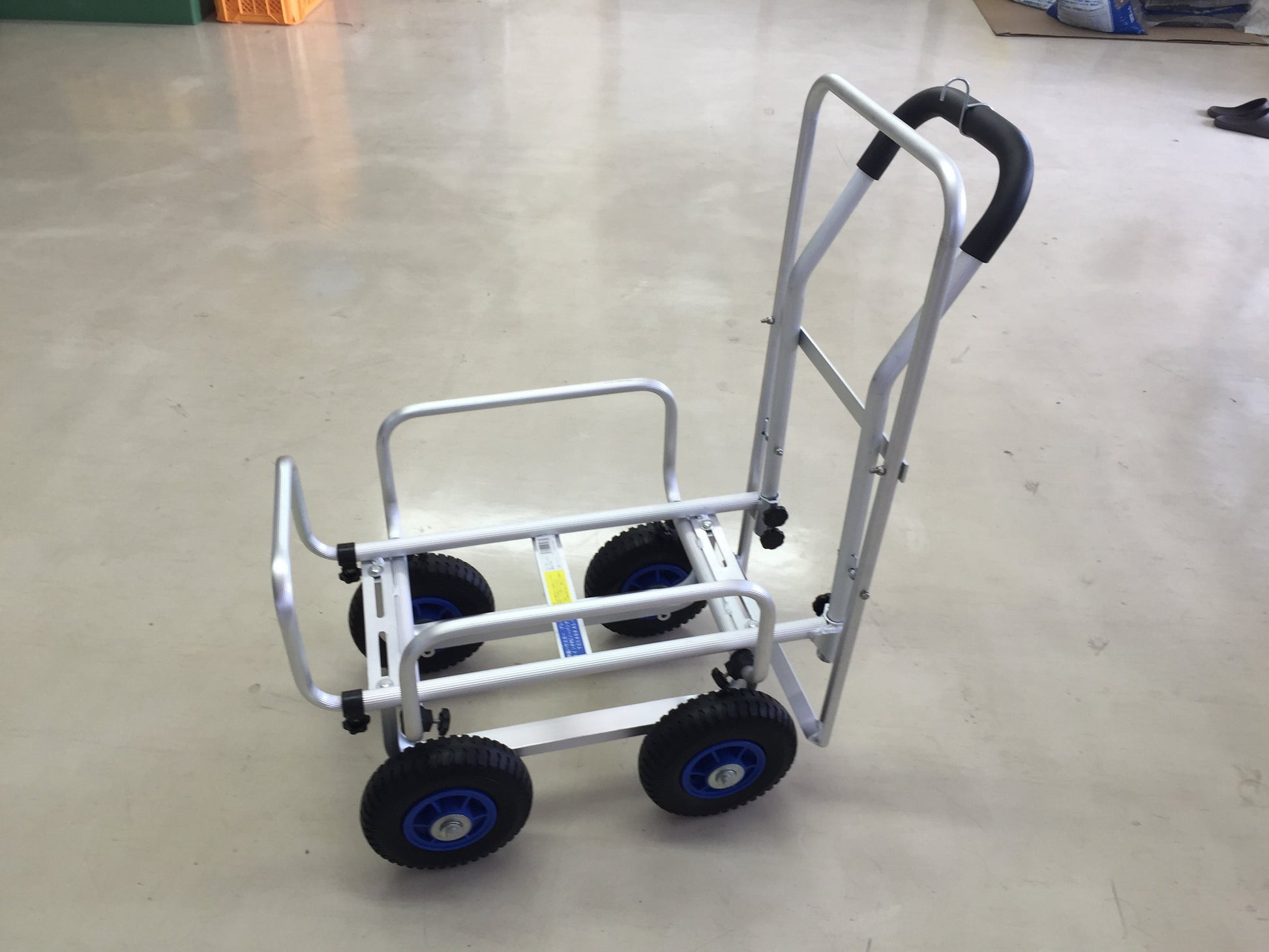 本体:アルミ、タイヤ・ハンドル部分:発泡ウレタン ホイール部分:PE