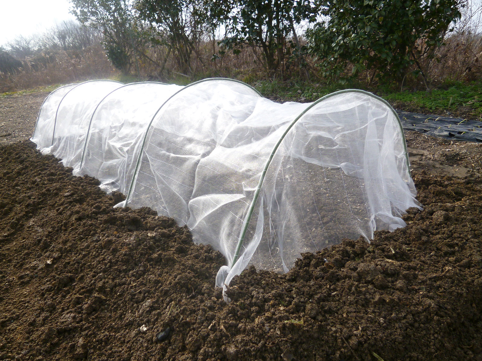 PE(防虫ネット) 鋼管+PE被覆(トンネル支柱)害虫侵入防止。