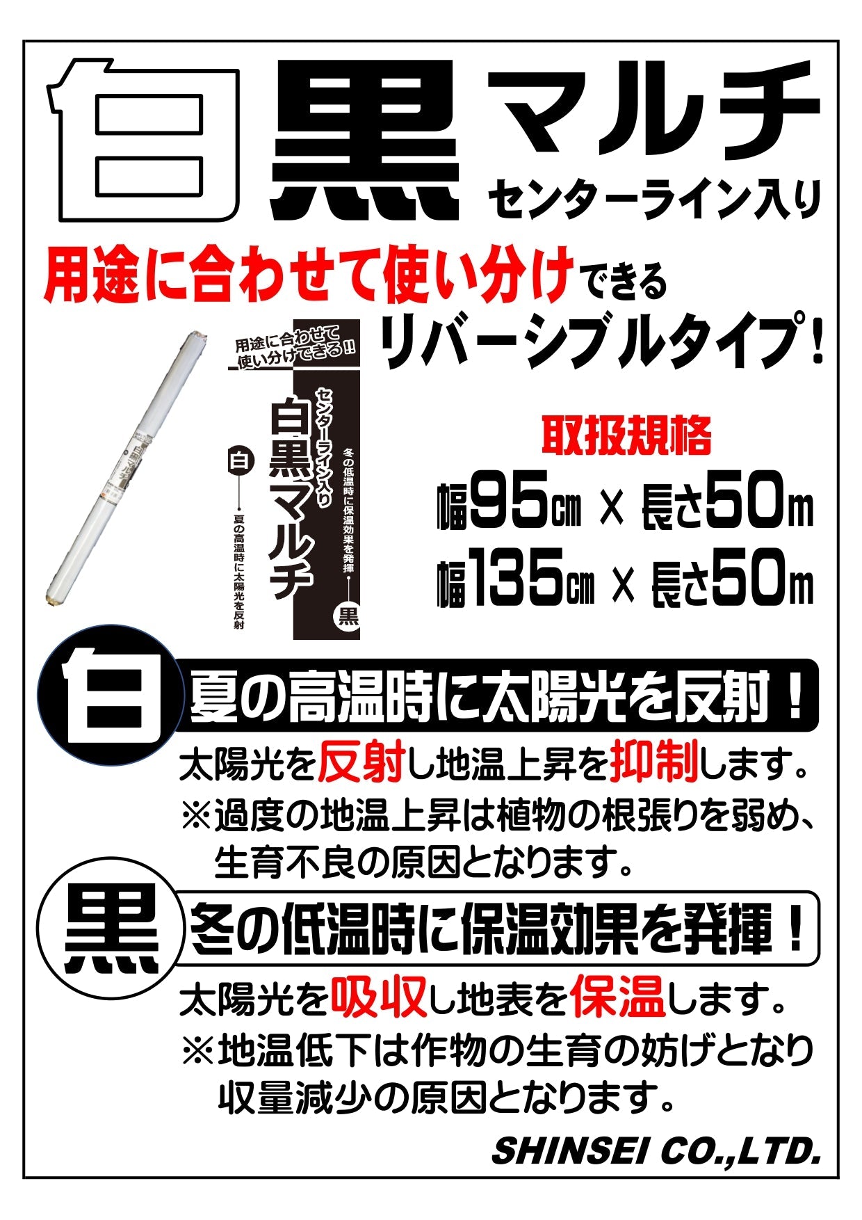 白黒マルチ センターライン入 0.025×95×50
